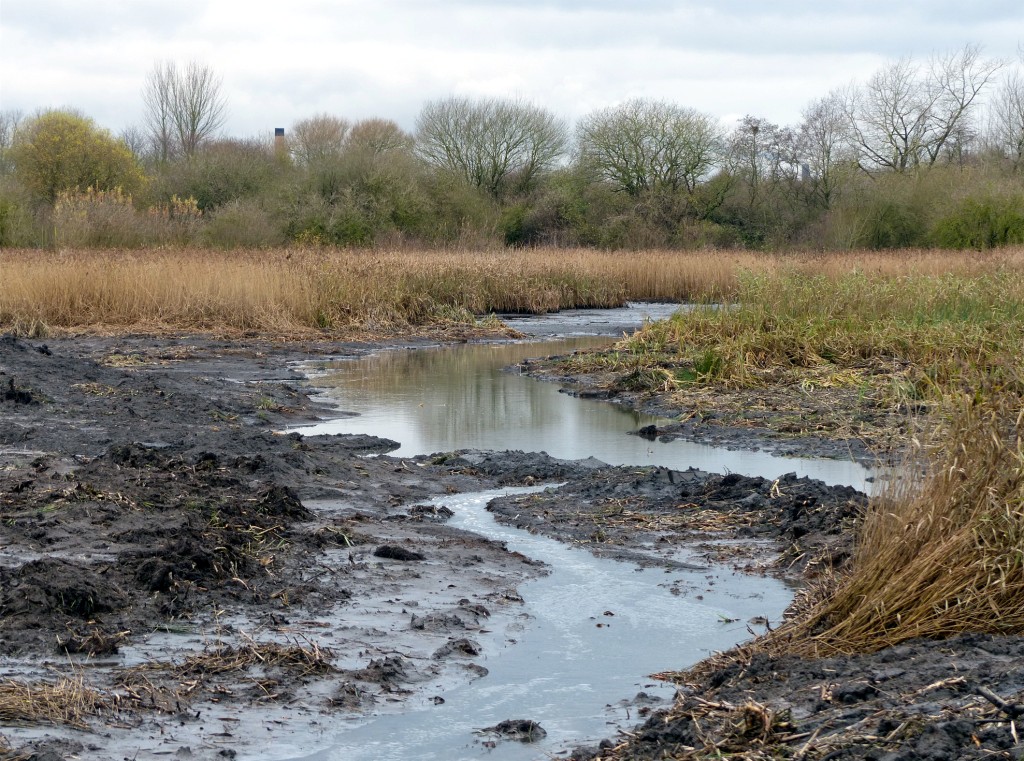The photo shows the changes to what was an extensive, drying reed bed, viewed from the east bank of No.3 bed. Eventually, more pools and channels will be visible from the hides.