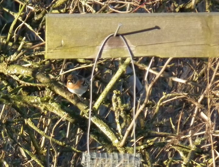 Not much activity on the frozen water today but that’s what we were expecting after seeing so many Goldeneye and Tufted Duck on Woolston Weir. The feeders at either side of the Morgan Hide were very busy, Greenfinch, Chaffinch, a couple of Siskin, a pair of GS Woodpecker, a Jay, most Tits including Willow, Robin, Brambling, a Pheasant and Dunnock underneath, a Reedbunting in front and of course the Marsh Harrier. At home on our own feeders were Bullfinch and Goldfinch, a good ‘bird’ day rounded off nicely.