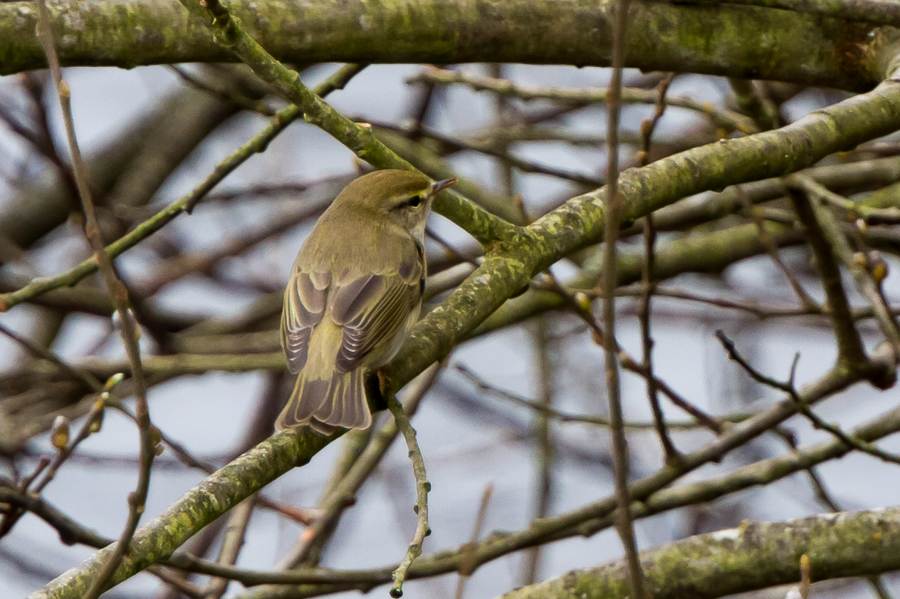Willow Warbler picture taken from the footbridge. As I remember there was several birds fly-catching in the sunshine.