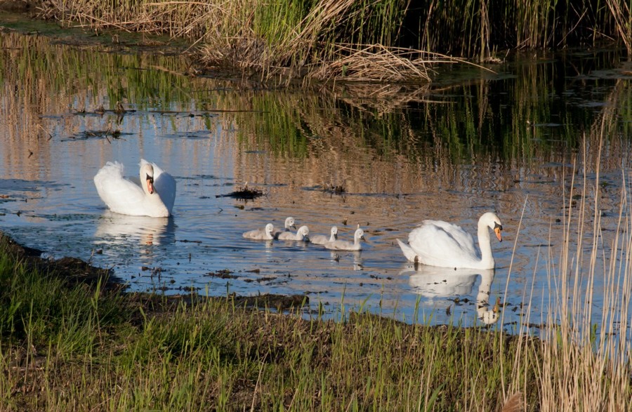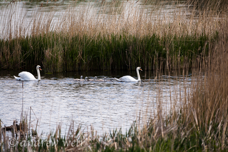 No3 bed today held 15 Black necked Grebes including 8 on the pool by the Rotary hide.The pair of Mute Swans still have their 5 young and at least 3 broods of Canada Geese were present.The first brood of Gadwall was reported.In the cool blustery wind up to 50 Swifts were feeding low over the east side of the bed with ca. 30 House Martins. Brian Martin