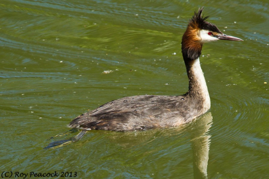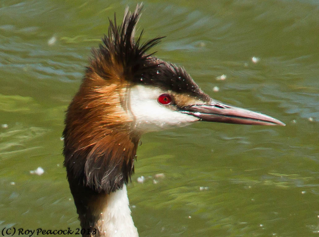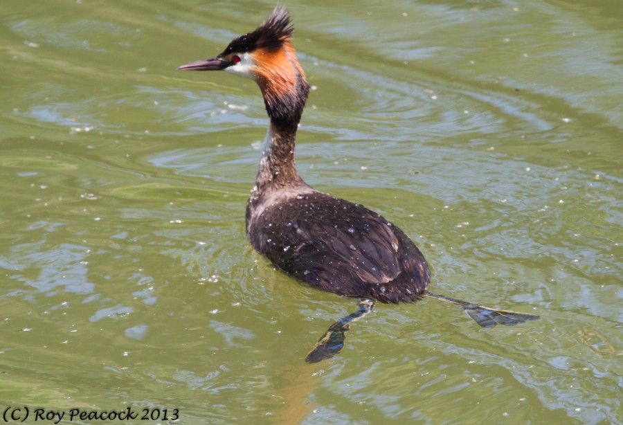 Cropped image of Great Crested Grebe taken from the footbridge.