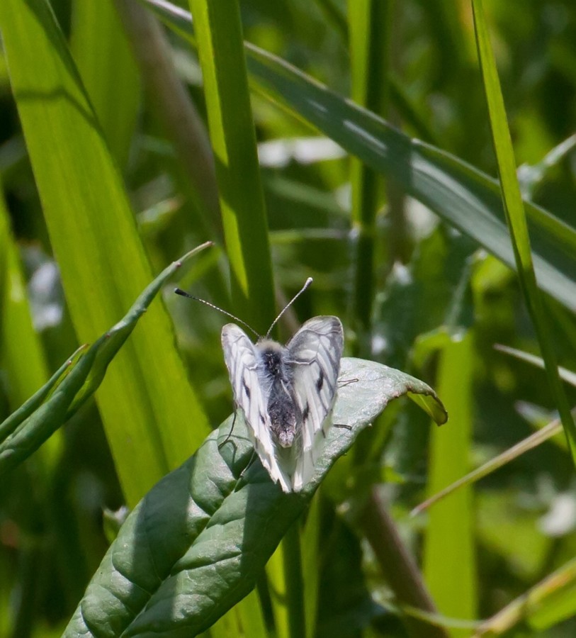 A fairly quiet day at The Eyes today with 4 Ringed Plovers and a Redshank on No.3 bed. The Mute Swans still have five young and 2 pairs of Canada Geese have broods of 4 and 2 small young. Black-necked Grebes totalled 13, less than recently but no doubt because some are on nests. Photo; Garlic Mustard, a common food plant of the Orange Tip butterfly.