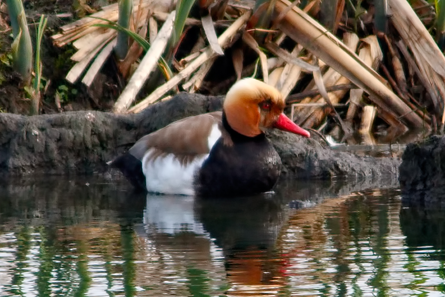 Correction to my caption further below, should of course read Reed Bunting (just another “senior moment”) and also checking your paying attention. Took advantage of the fine weather today and spent some time on the footbridge observing the Great Crested Grebes that patrol this stretch of water, with the advantage of an elevated position, good light conditions and water clarity, I could clearly see just how far back the Grebes legs and very large “paddle feet” appear to be in relationship to its body.