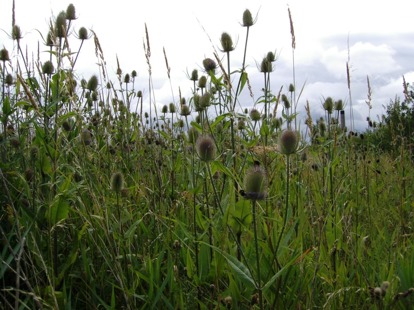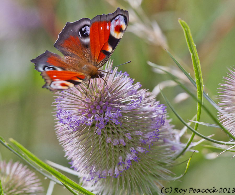 The amazing records of butterflies on the reserve continue. Today there were 230 Peacocks on No.3 bed including 190 on Buddleias on the south bank. In addition a Buddleia at the ferry held no less than 90! The previous record count of this species (500) has already been exceeded. The butterfly transect which includes the west bank of No.2 bed and the south bank of No.3 bed produced a total of 346, the previous highest count being 200 in 2006. Most of today’s butterflies were peacocks and Small Whites. Photo; Teasels on No.4 bed