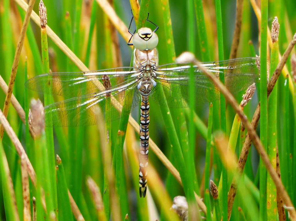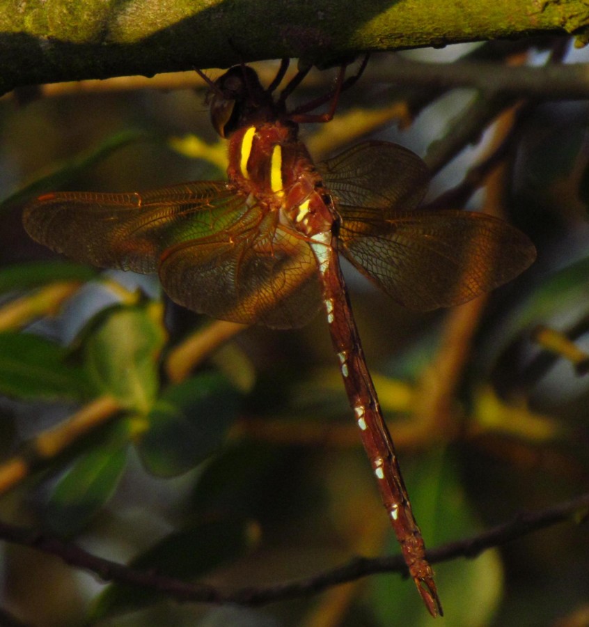 Photo of a male Brown-Hawker Dragonfly hiding under a branch next to the Rotary hide (taken on the 19th)
