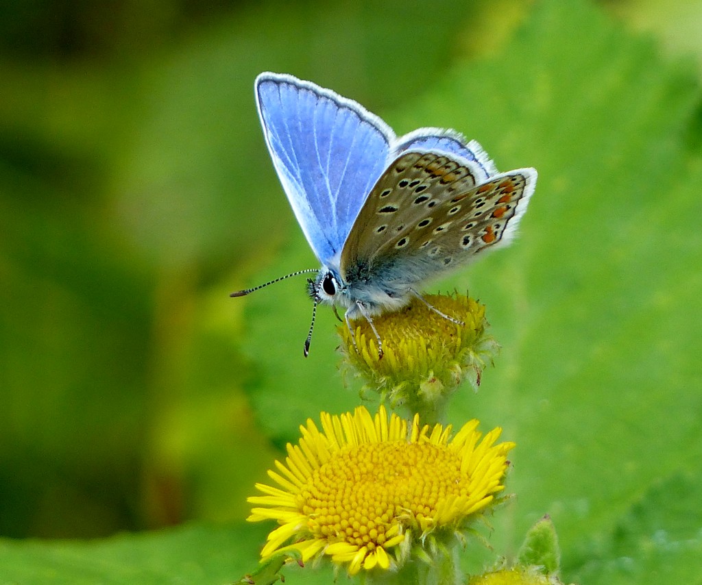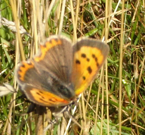 A lovely morning with plenty of butterflies although Peacock numbers were down from last week’s peak. Numbers 1,2 and 3 bed were covered before the weather clouded over, including part of the recycling plant area which was, as usual, very productive. Common Blue and Small Copper continue to emerge and were present in good numbers. Totals were 169 Meadow Brown, 57 Gatekeeper, 187 Small White, 223 Peacock, 91 Common Blue, 16 Small Copper, 10 Speckled Wood, 1 Red Admiral, 3 Large White and 2 Small Tortoiseshell. Photo; Small Copper on No.1 bed