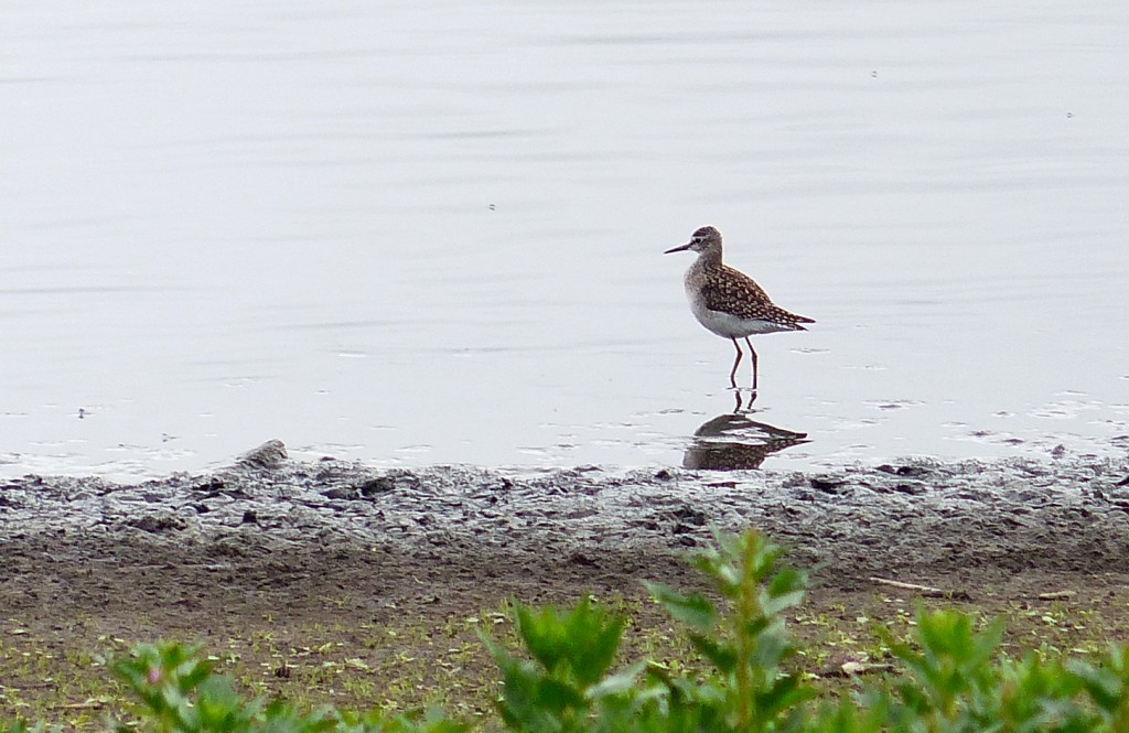 A really enjoyable morning started with a juvenile Cuckoo, flushed from near the Morgan Hide on No.3 bed. Going into the hide, a Hobby immediately flushed the flock of 90 Lapwings roosting to the right of the hide. Presumably the same Wood Sandpiper, which has been around for a while, then flew onto the scrape in front of the hide. Further scoping, produced a Little Ringed Plover and a fly-past by a Green Sandpiper. A single young Black-necked Grebe, half-a-dozen Little Grebes, c.80 Swifts plus a smattering of all three hirundines, 2 Sparrowhawks and a Buzzard were other sightings. We then moved on to No.4 bed where 3 Black-tailed Godwits (2 still in summer plumage) and 6 Grey Herons were feeding among the Black-headed Gulls, Lapwings and Gadwall. Finally, we ended up on No.1 bed, where two juvenile Peregrines chased out after a flock of Feral Pigeons, nailing one after a high speed chase. Dragonflies were out in good numbers on this bed with: 2 Black Darters (very scarce at Woolston), 1 Migrant Hawker, 1 Southern Hawker, c.100 Common Darters, 2 Black-tailed Skimmers, 1 Brown Hawker, plus hundreds of damselflies, including Common Blue, Blue-tailed and Emerald. Photo of Wood Sandpiper in No.3 bed