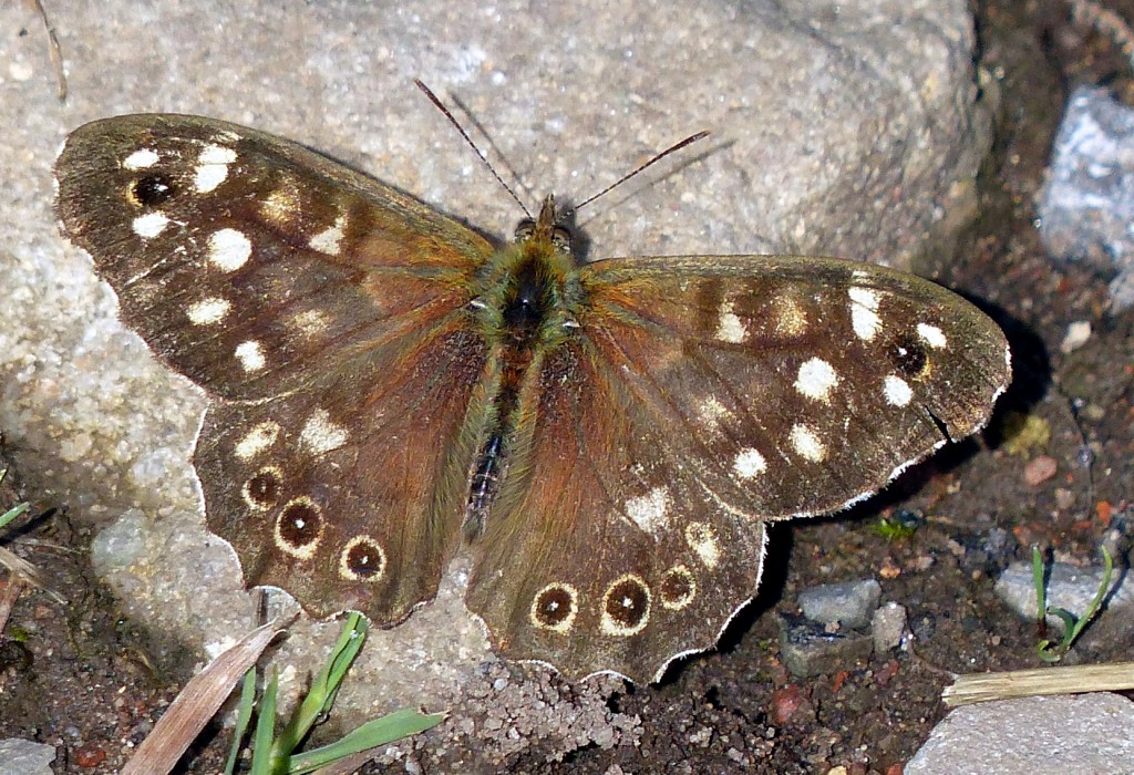 A walk round all four beds, accompanied by Les Jones, produced a record number of Speckled Woods. A total of 126 included 49 on Butchersfield Tip alone. A number of Common Blues and Small Coppers were also present, together with a late Gatekeeper. Small Tortoiseshells continue to be seen in good numbers. A Greenshank was on No.3 bed and 12 Grey herons on the Loop