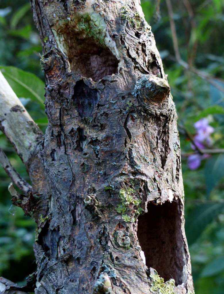 Photo of a Willow Tit’s nest from No.4 bed, showing evidence of predation by a Great Spotted Woodpecker - an increasing problem for this species. The nest hole is top left, with the excavation by the Woodpecker on the lower right.