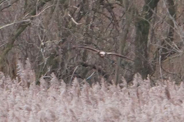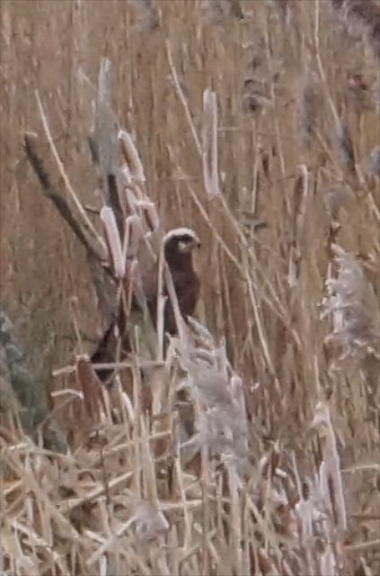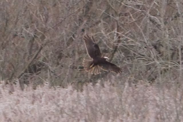 4.1.14 Met Dave Bowman and party as I was going in. Alerted me to the Marsh Harrier. Excited because I have never seen one at the Eyes. Attributable to my lack of patience. This time I was lucky and did not have to wait long. Though reported as a female the lack of pale leading edge of wings suggests a juvenile.