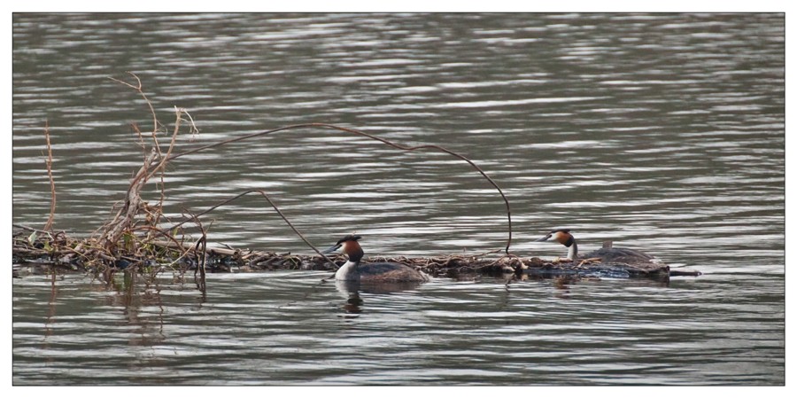 Great Crested Grebes, spotted on the Wier between Beds No2 and No3