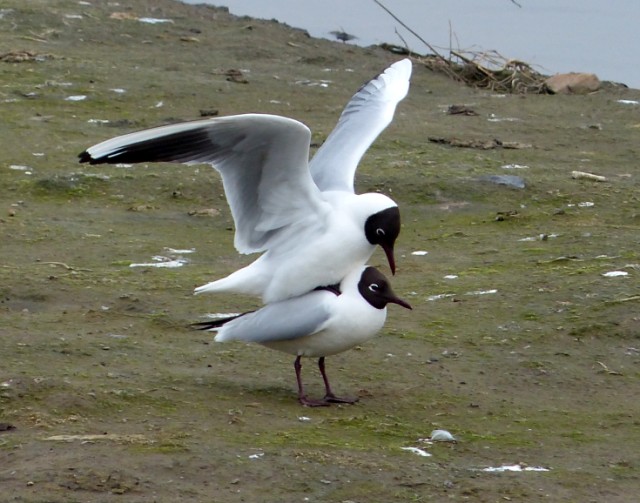 Lots of gulls on No.3 bed this morning. About 1100 Black-headed whilst about 50 Herring Gulls drifted east and 22 Lesser Black-backed on the water. There were 9 Black-necked Grebes, 8 Little Grebes and 6 Great-crested Grebes. A male Ruddy Duck and 3 displaying Lapwings were present whilst a male Brambling was seen briefly under the feeders. On No.1 bed 2 Little Ringed Plovers and a pair of Lapwings were calling noisily. At the viaduct were a pair of Grey Wagtails. Butterflies included Peacock and Small Tortoiseshell. In all a very productive morning!