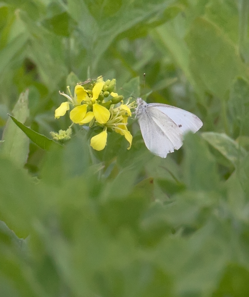 Lovely warm weather and lots of Butterflies on the reserve. Plenty of Tortoiseshells (20+) 4 Speckled Wood, 1 Large White, 3 Small Whites, 1 Admiral. Also spotted 5 blue damselflies, a four spotted chaser, and what I think was a badger than ran right across the path near the south meadow. I heard something creeping along in the grass and then out it came, only to carry on its journey into the woods. Photo is of a small white butterfly.