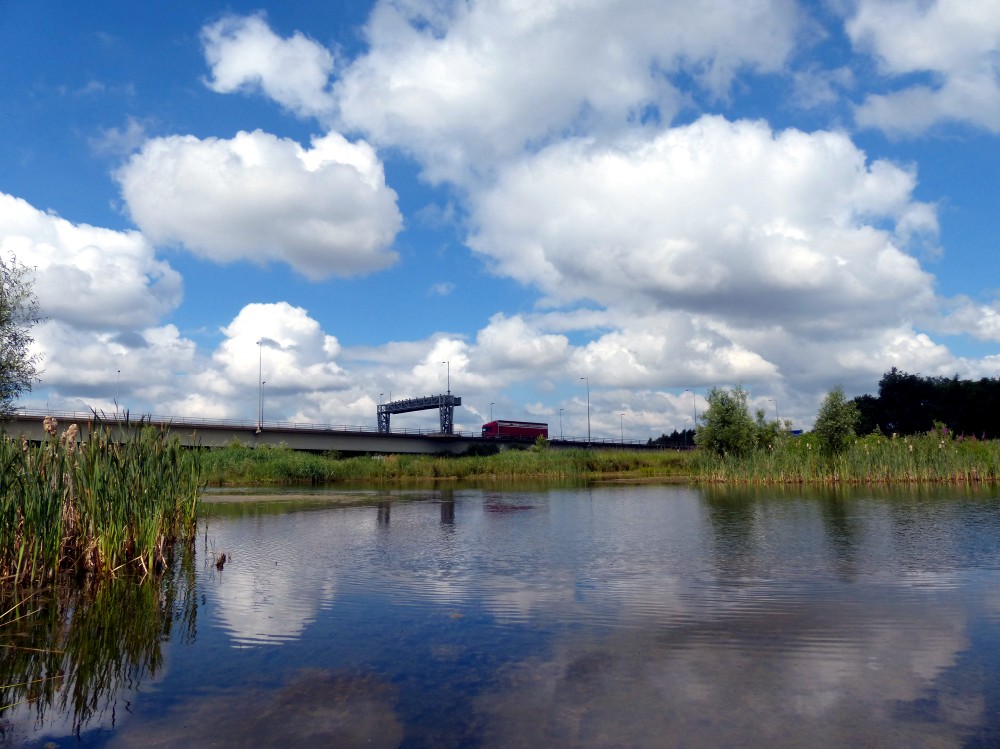 View over the “New Pool” on No.1 bed, looking towards Thelwall Viaduct.