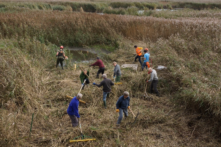 A very productive morning creating channels and pools in front of the “Tower Hide” on No.3 bed. Grateful thanks to all those who turned up to help and made an arduous job a whole lot easier. Should be good for waders, rails (even crakes) now. Birds noted during the morning included: 19 Black-tailed Godwits, 1 Redshank, 1 Pintail, 2 Wigeons, 1 Snipe, 37 Redwings, 12 Skylarks, 2 Mistle Thrushes, 3 Sparrowhawks and 6 Buzzards.