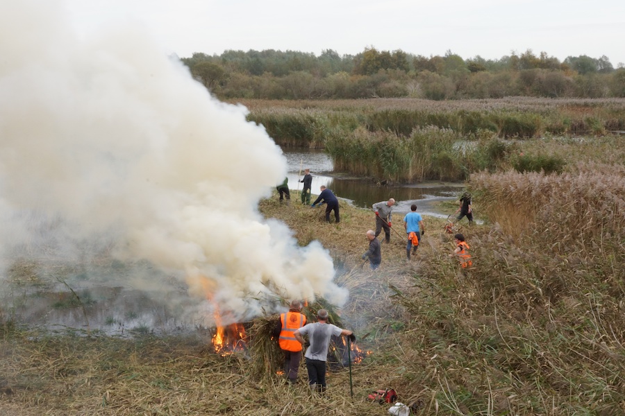 Not exactly a wild life sighting but here are photos of the beginning of our reed cutting programme. Following the capital works on reed bed management we have funding from DEFRA to cut the reed bed twice over the next ten years. Today we made a start with staff from our contractor Environmental Land Management and a good turnout of volunteers. Reeds were cut and burnt with the objective of preventing build up of the ground level by dead reeds.
