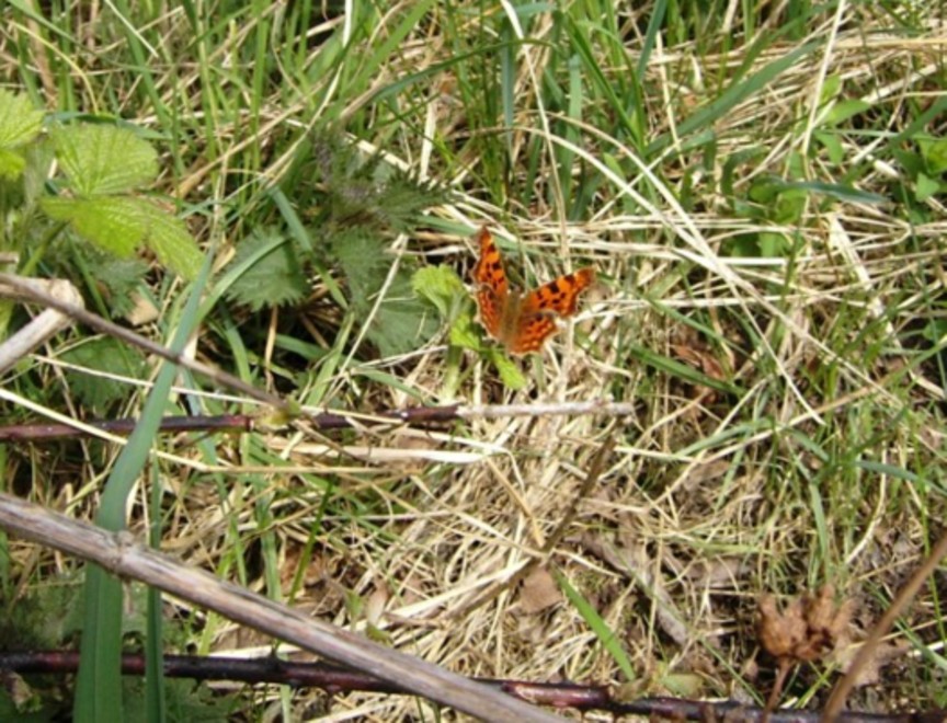 Another lovely day at the Eyes after a rather cloudy start. There were lots of warblers about including 77 Chiffchaff (slightly down on last week), 19 Blackcap, 15 Willow warbler and 2 Cetti’s Warblers heard; one at the weir and one on No.1 bed. 2 Grey Wagtails appear to be nesting at the locks as is a pair of Mute Swans. On No.3 bed were about 900 Black-headed Gulls, 3 Oystercatchers and 6 Black-necked Grebes. Butterfly totals were 88 Peacock, 47 Small Tortoiseshell, 3 Orange Tip, a Small White and a Brimstone. Photo; Comma on No.1 bed