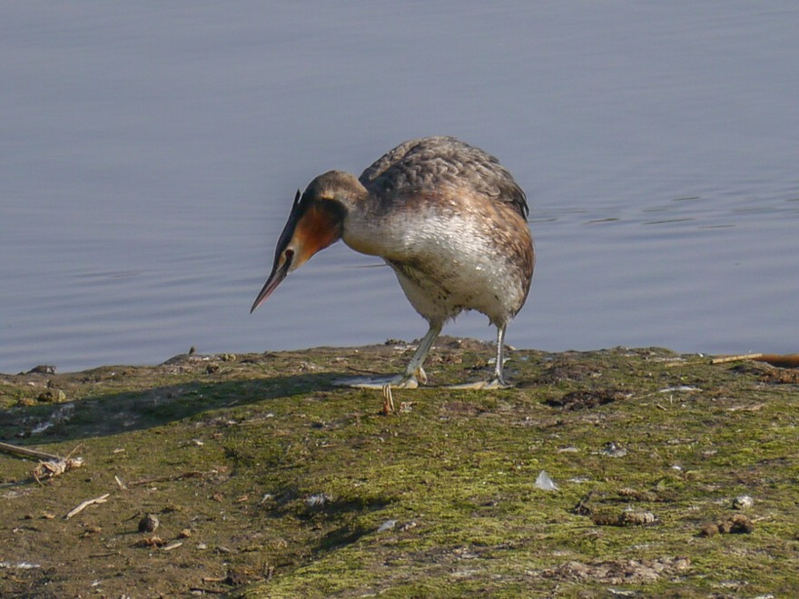 This grebe went for a brief and ungainly walkabout on one of the ridges today!