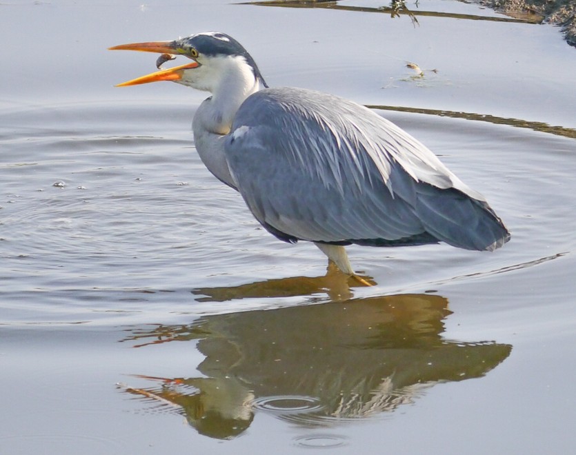 9 Black-tailed Godwits circled No.3 bed this morning. Unfortunately they didn’t land but flew off southeast. The Cetti’s Warbler was again singing below the banks of No.2 bed and also at the weir basin. Photograph of Grey Heron from the John Morgan hide.