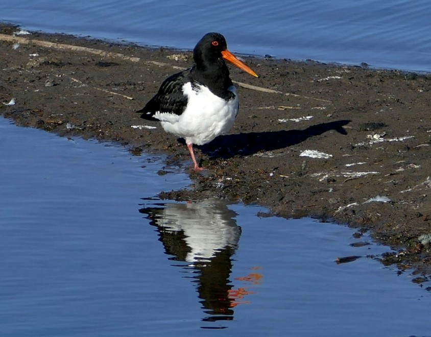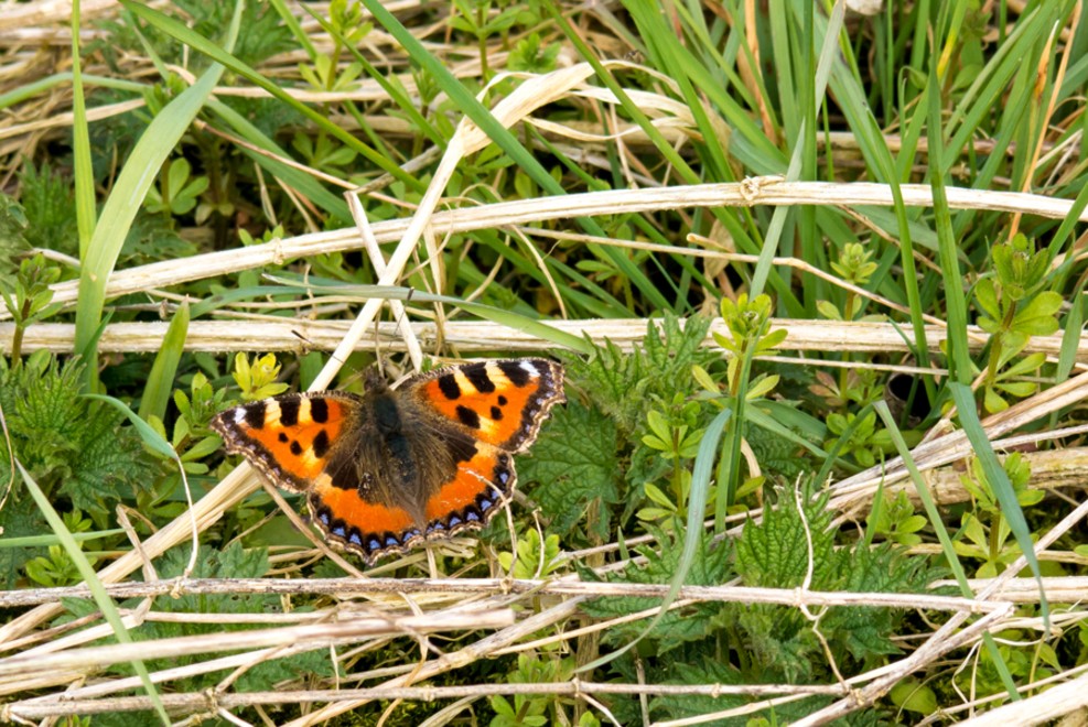 Took advantage of the sunny afternoon to carry out my first survey of the butterfly transect this year. The temperature was 14 degrees and on the transect I counted 7 Peacock, 2 Small Tortoiseshell and a male Brimstone at the car park. Additional butterflies on No.3 bed and the canal track were 9 Peacock and 4 Small Tortoiseshell. Some were warming themselves on a pile of stones beside the track. A good start to the season! Also an Oystercatcher was on No.3 bed.