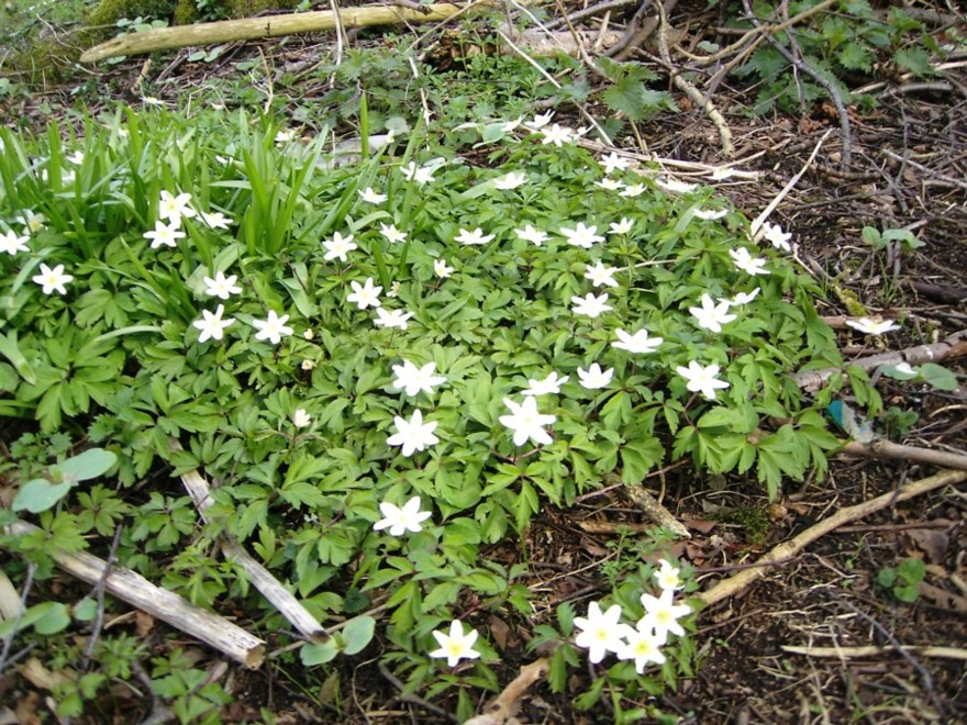 A glorious spring day resulted in some excellent butterfly counts, including 74 Peacock, 28 Small Tortoiseshell, 2 Comma, 2 Brimstone and a single “white” thought to be a Small White. Chiffchaffs totalled 88, and with another 6 known to be present in other areas of the Reserve an overall total of 94 was excellent. Photo; Wood Anemones on No.3 bed