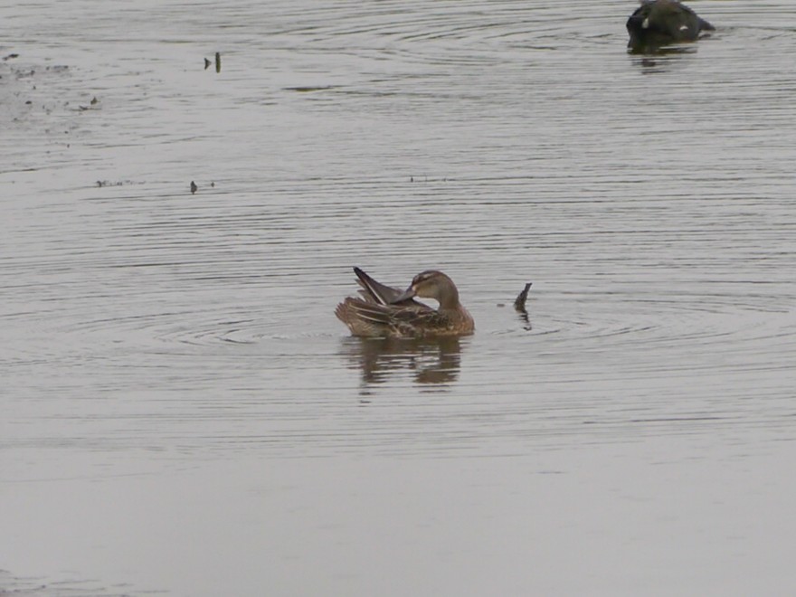 The Great White Egret was still present today, favouring it’s usual area of reeds along the north bank. Other sightings included Garganey (see photo), 4 Green Sandpipers, 3 Common Sandpipers, 1 Greenshank, 7 Snipe, 1 Little Ringed Plover, c20 Black-tailed Godwits and 2 Common Terns. John Langley also saw a Hobby along the east bank.