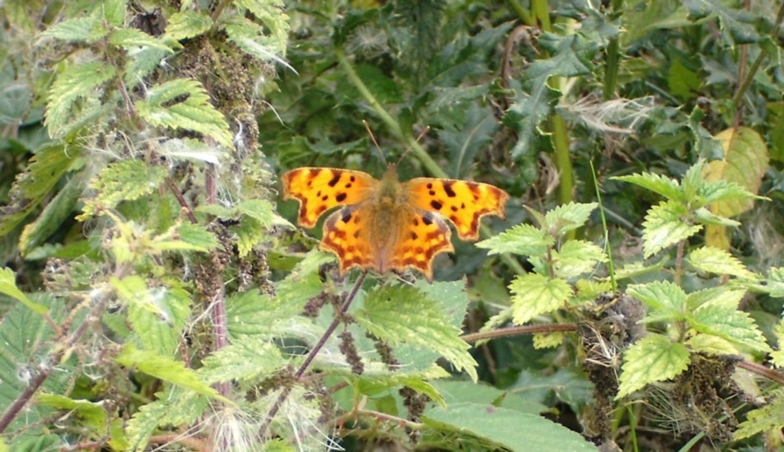 In spite of earlier forecasts of wet weather it turned out to be a lovely autumn day for my weekly walk around the reserve. Speckled Woods were still plentiful and a reserve-wide count of 50 was excellent so late in the year. There were also a few Small Tortoiseshells, Peacocks, Red Admirals and a Comma on No.4 bed. A couple of late flying Small Whites were also seen. A pair of Grey Wagtails was at the locks and a flock of 125 Canada Geese on the canal at the eastern end of the reserve. A further 70 were on No.3 bed together with 18 Greylags. Also on No.3 bed were about 400 Lapwing, 80+ Black-tailed Godwits, 2 Green Sandpipers and a Ruff. Photo; Comma on no.4 bed