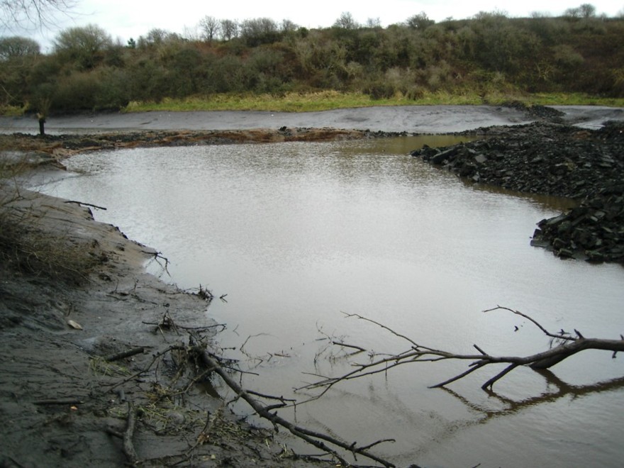 The Eyes looked very strange today due to the low water levels in the canal and river. This is a result of deliberate action by the Ship Canal Company who are carrying out work to the sluices at Latchford Locks. The water level has been reduced in order to enable divers to carry out the work. Part of the river bank to the north of No.2 bed has collapsed and it was not possible to walk up to the viaduct as the footpath has been closed. There were large numbers of Black-headed Gulls present - about 550 in total. One or two of these were acquiring their summer plumage! Another unseasonable occurrence was a Song Thrush singing on the south bank of No.2 bed, clearly confused by the exceptionally mild weather (13 degrees today). Mallard numbers have increased and I counted 143, whilst Tufted Duck totalled 260. A Pochard was on no.3 bed and Dave Spencer and I saw a Nuthatch at the weir. Photo; low water to the north of No.2 bed