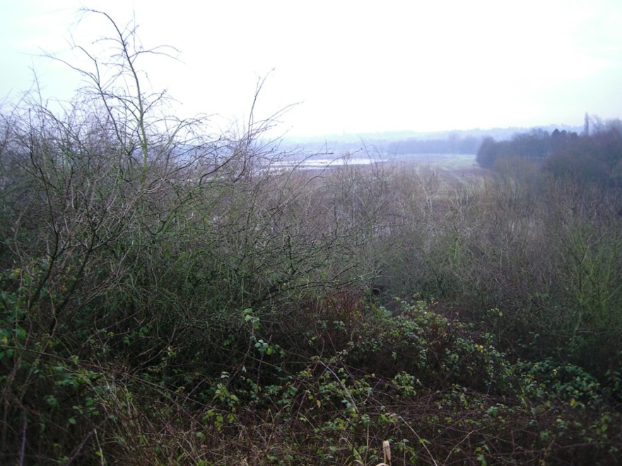 Photo; view to the south from Butchersfield Tip showing the recently flooded fields to the east of Lymm Golf Course.