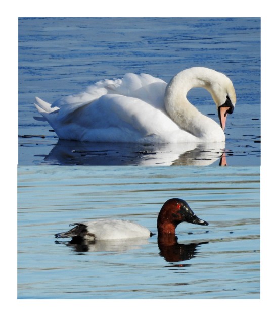 Little Grebe 2, Great crested Grebe 10, Cormorant 17, Mute Swan 16, Grey Heron 3, Greylag Goose 22, Canada Goose 75, Shelduck 5, Gadwall 51, Teal 148, Mallard 85, Shoveler 15, Pochard 19, Tufted Duck 353, Goldeneye 5, Moorhen 19, Coot 55, Water Rail 3,Lapwing 90, Snipe 1, Black headed Gull 208, Common Gull 1, Lesser Black backed Gull 2 .
