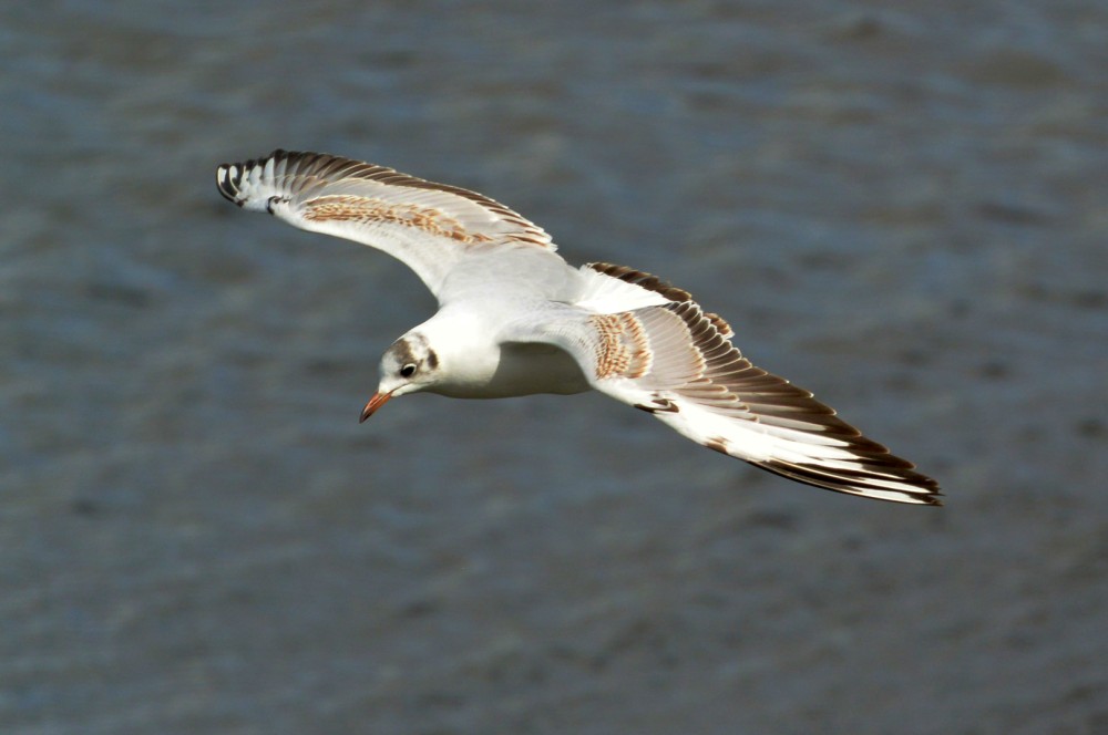 Photo of an immature Black-headed Gull in flight on No.3 bed today.