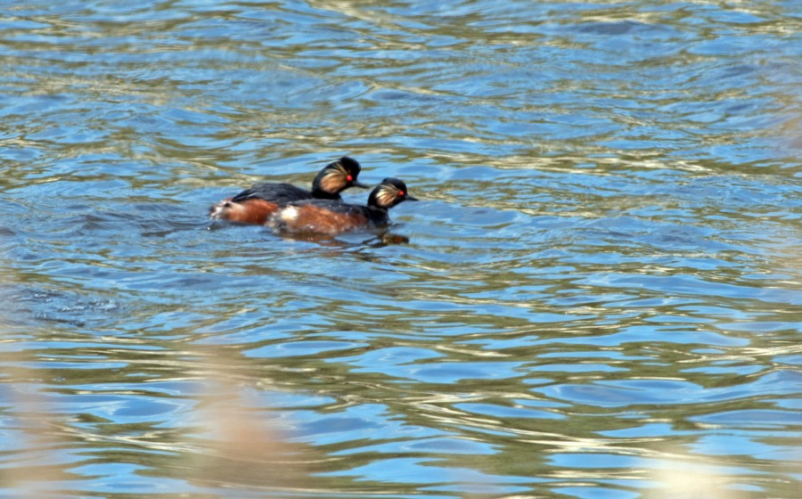 Black-necked Grebe (podiceps nigricollis)- two of four on the north pool. Long distance shot so poor quality!