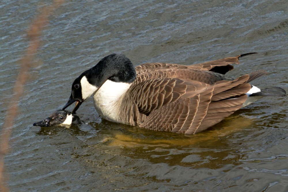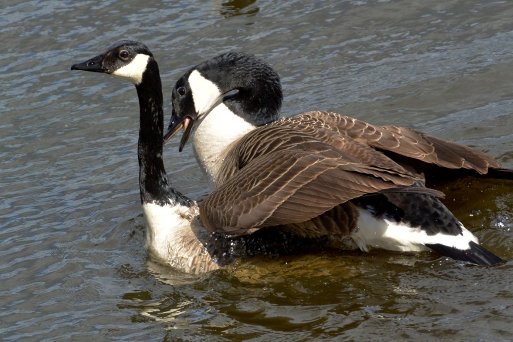 Photo of a pair of Canada Geese mating in front of the Morgan Hide today.