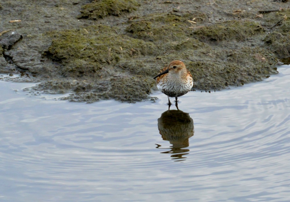 A Little Egret flew in this evening and spent 10 minutes on the scrape before heading off east over no.2 bed. The Dunlin was still on the scrape but flew off north when it was harassed by the egret.