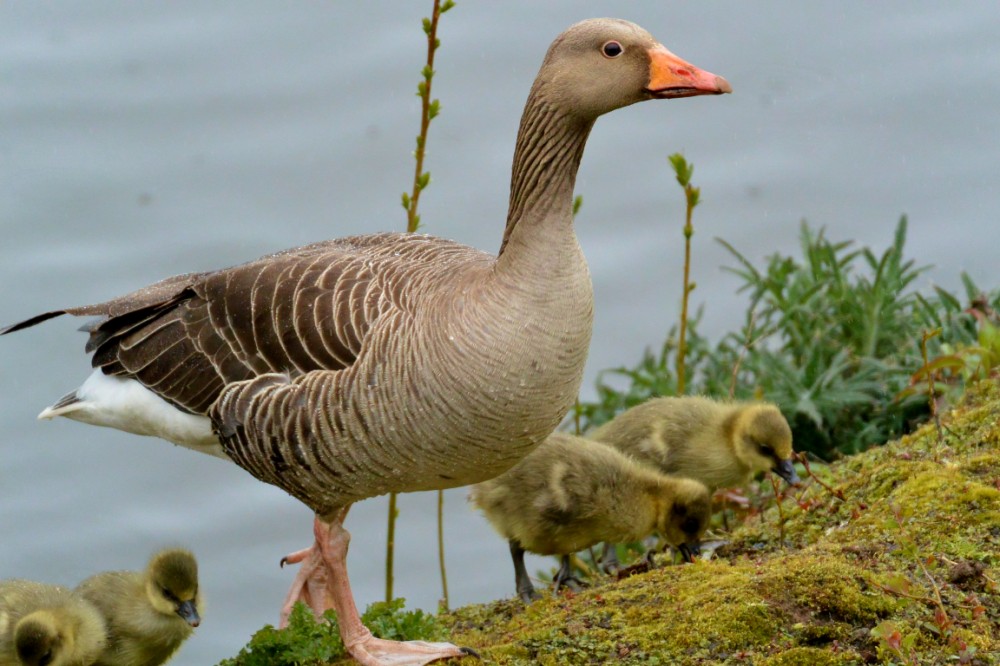 Photo of a Greylag Goose with young from this morning