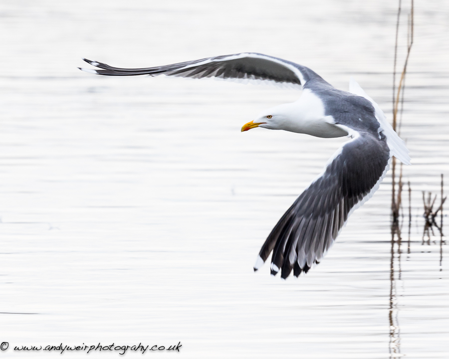 Photo of an immature Lesser Black-backed Gull in flight from No.3 bed today.