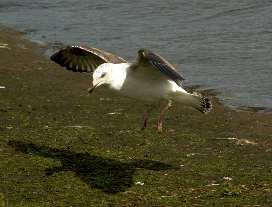 Yes David that is a Common Sandpiper. I saw possibly the same bird from the south screen. So in little more than an hour the Lesser Black-backed Gulls took 2 Greylag and 1 Coot young. Worse is yet to come I fear! Picture of a 2nd summer Mediterranean Gull which was roosting on the ridges early morning.