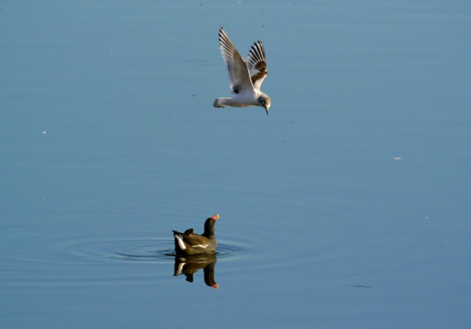 Photo of the Little Gull mobbing a Moorhen.
