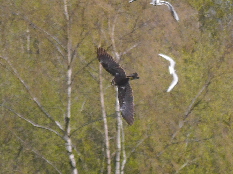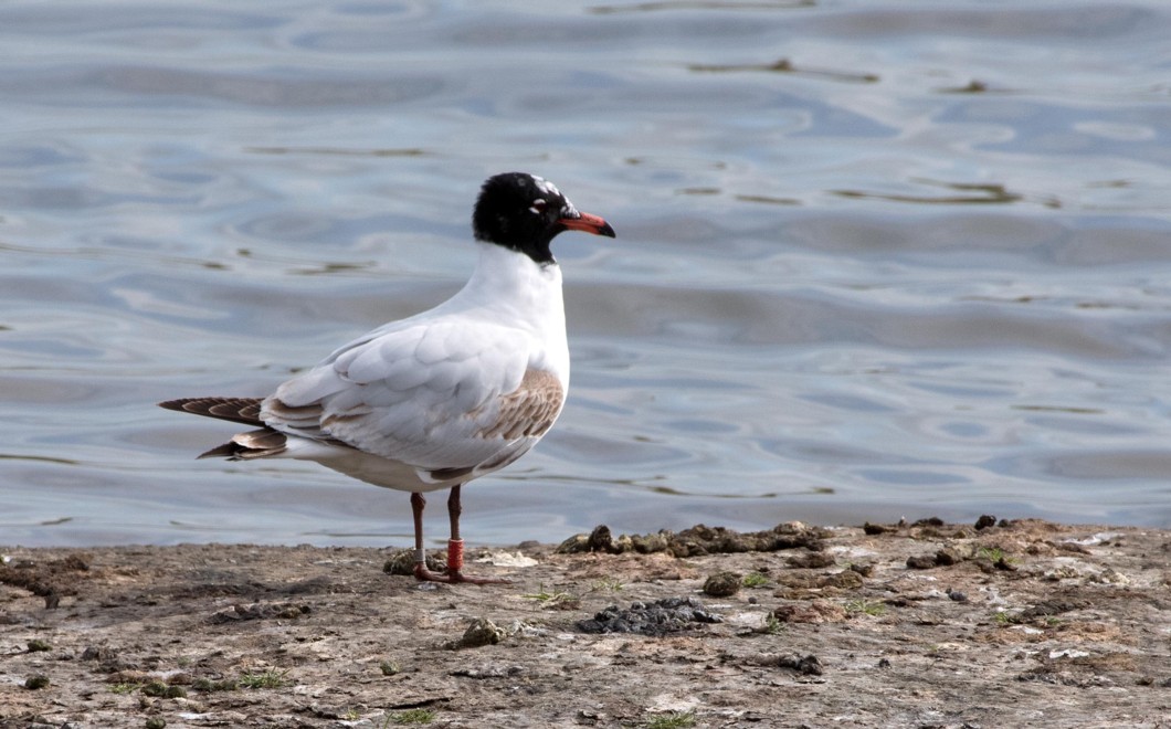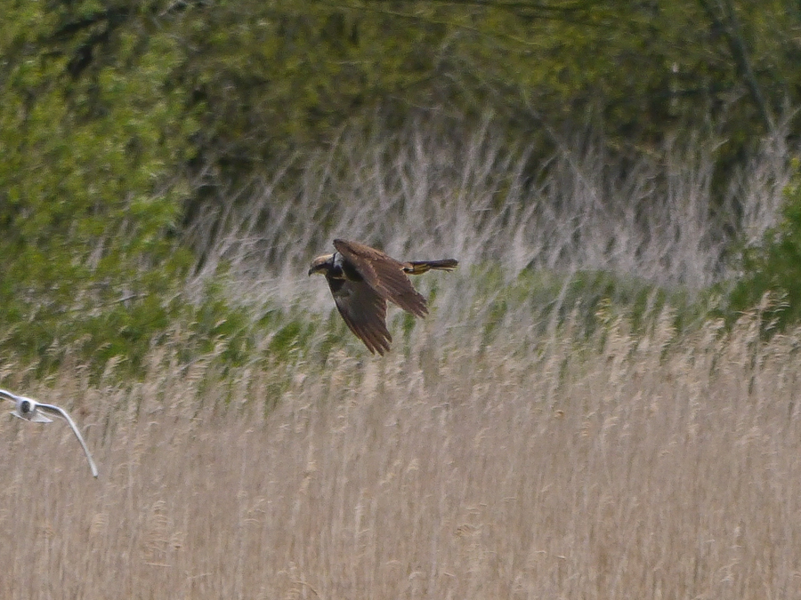 One Red Kite was seen this morning. Initially it was seen flying south, low over No.2 bed and was thought to have flown south. However it reappeared circling high with two Buzzards over the SE corner of No.3 bed. Also present was one female/imm. Marsh Harrier (a different individual to the one seen on Saturday). Two adult Mediterranean Gulls were again seen in the Black-headed Gull colony. Of interest last week’s colour ringed 1st summer Med Gull(red PRY6, see Chris Monk’s photo below )was ringed in Poland as a nestling on 20th June 2015. Also last week, the adult summer Med Gull reported by Harry Abbot with a white darvic ring, E718, is a Dutch bird ringed as a nestling in June 2012. Since then it has been seen in Germany and Ireland; the last report was on 21st January2016 at Bray Harbour, Wicklow.