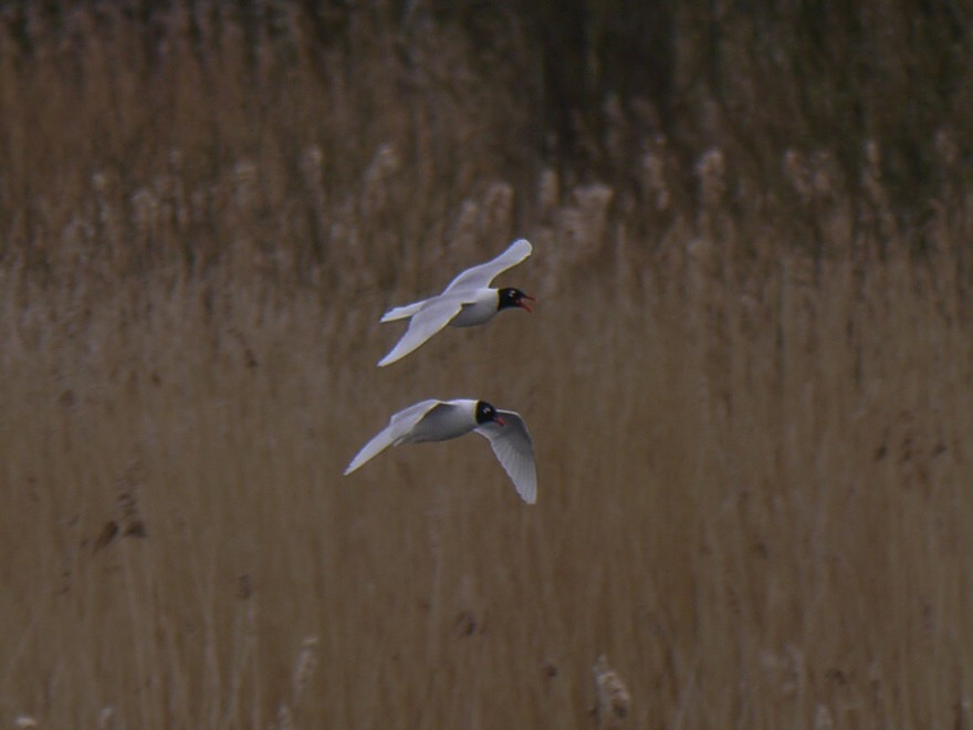 A pair of adult Mediterranean Gulls put in a brief appearance mid-morning. One Black-necked Grebe was present and John Verdon reported a Redshank on the scrape. Yesterday, presumably the same pair of Mediterranean Gulls were present and a 2nd summer bird was also seen early morning.