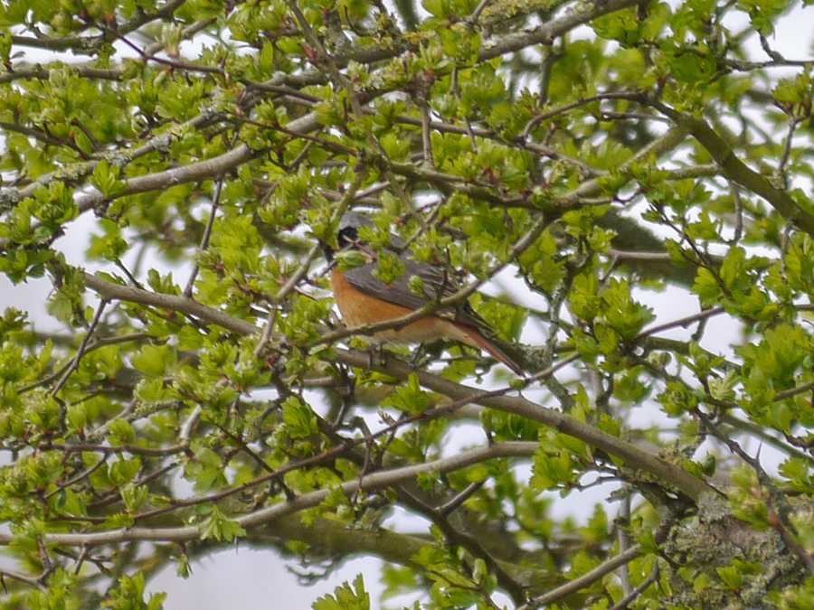 A male Redstart was in bushes bordering the winter feed area this morning. Unfortunately it was rather camera shy! Also of note was a Whitethroat singing near the John Morgan hide.