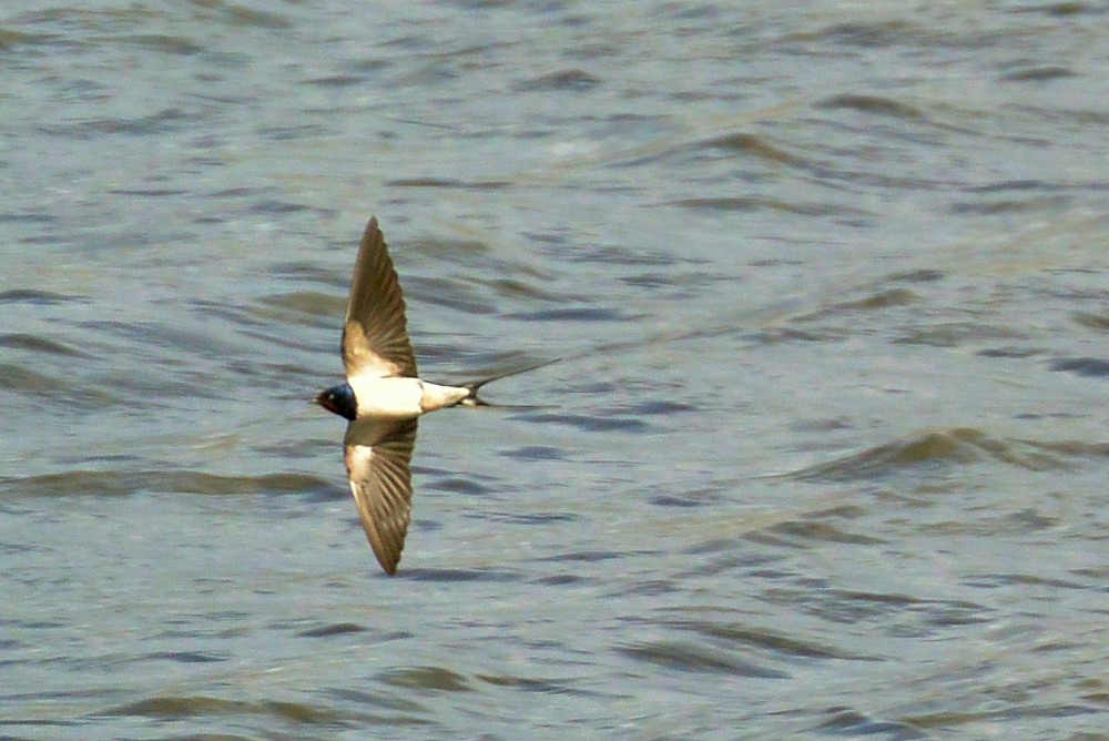 Photo of a very distant Swallow among the hundreds of Sand Martins today on No.3 bed