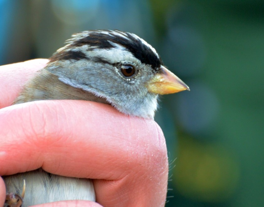 Well, all days birding at Woolston Eyes are good days but some are truly great days……and this was one of them. Started with a nice Grasshopper Warbler ringed by Kieran Foster et al. Then an understated text from Mike Miles …” bird in the net, could be White-crowned Sparrow….opinions on the ID welcome”. Mad, adrenalin-fuelled dash to the Obs. Turned out to be a spanking White-crowned Sparrow, a second year bird in pre-nuptial moult, decided by the retention of some brown feathers in the black parts of the crown. Then the logistics of trying to make sure that as many people as possible got to see the bird. All the people who came were great, even though not everyone got to see the bird…so thanks. Thanks also for the donations, which raised over £300 for the Reserve. The bird was then seen on and off till 11.45 in a bush right by the Morgan Hide, where it was released. Then seen to fly a little further away into cover and not relocated. We’ll see if we can re-find it tomorrow and let people know. Bit of “after the Lord Mayor’s Show” but other birds included: Hobby, Spotted Flycatcher, Dunlin, Common Sandpiper, 15 Black-necked Grebes, Cetti’s Warbler, 3 Swifts and more than 300 House Martins. Cheers David Bowman (with David Spencer, Kieran Foster, Mike MIles, Alan Warford, Paul Hazlehurst, Brian Baird, Helen Allan, Diane Shepherd and George Dunbar)