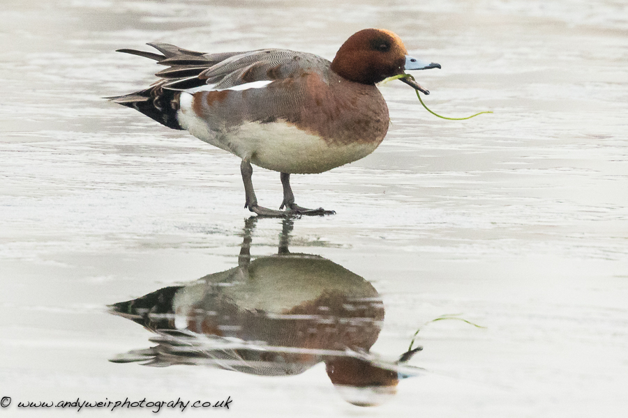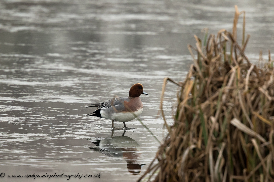 Wigeon (Anas penelope) on the ice in front of the John Morgan Hide