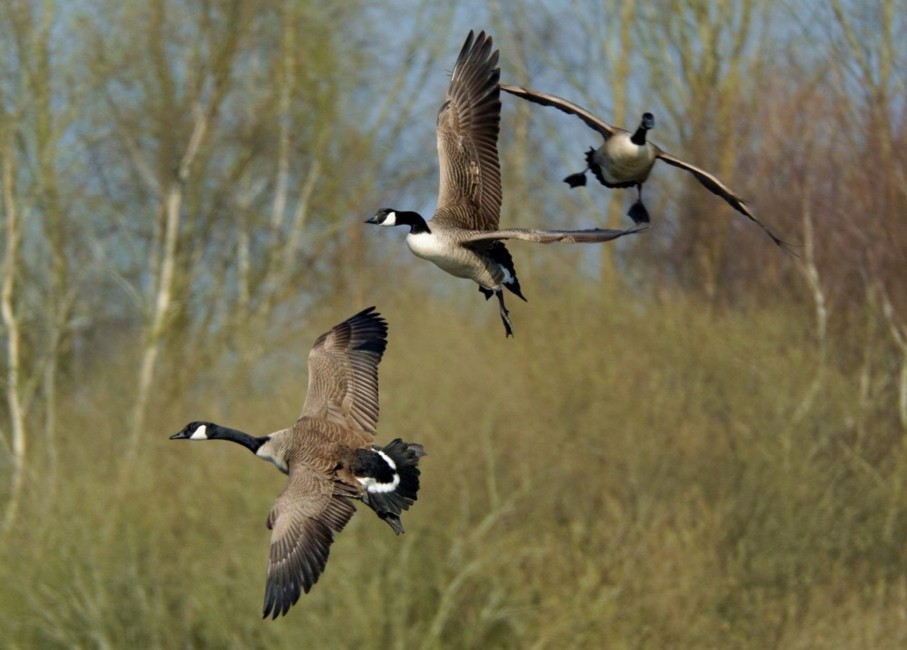 Photo of Canada Geese dropping into No.3 bed today.