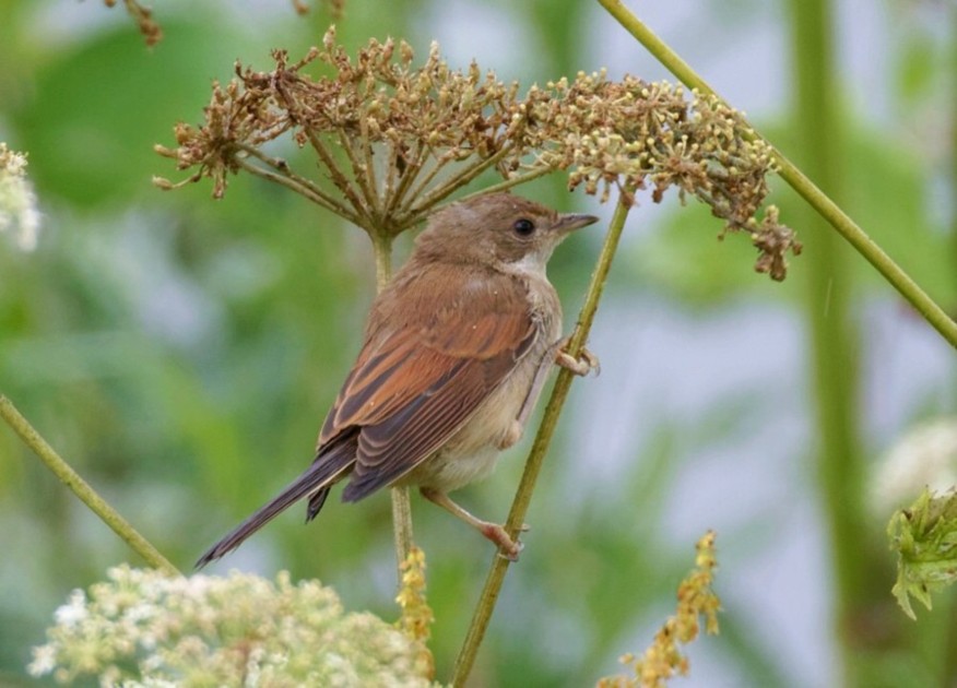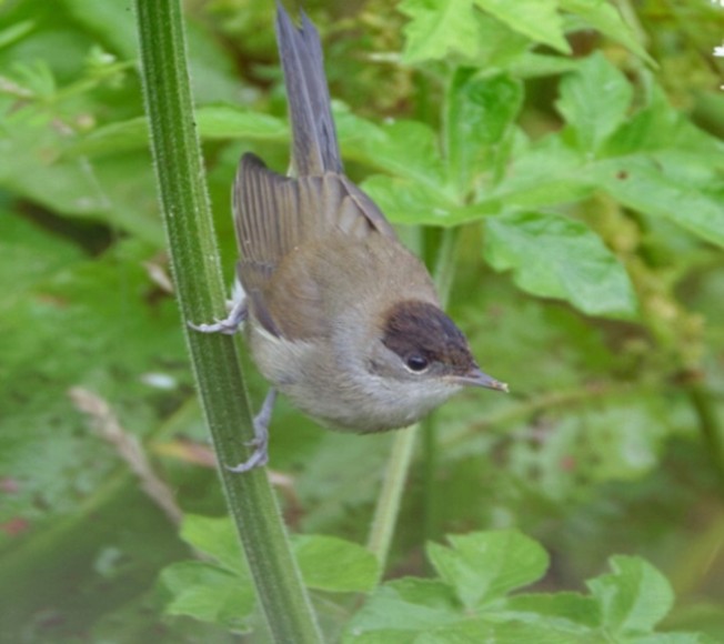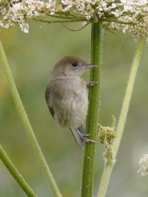 On a morning of constant drizzle, I decided to hole up in the Morgan Hide to see what I could find. Best birds were at the beginning and end, with a Hobby stooping through a cloud of 70 Swifts and 30 Sand Martins soon after arrival and then a flock of 34 Black-tailed Godwits, which flew east in mid-afternoon. In between, highlights were: our 8th brood of Black-necked Grebes, a new brood of 5 Gadwall, a drake Ruddy Duck, 68 Coot, a surprising 600 Black-headed Gulls flushed from the reed-bed by a passing Buzzard after previously counting 112 young gulls plus 27 sitting birds. Otherwise, I entertained myself by trying to photograph the numerous young warblers which were feeding in front of the hide, which included Reed Warblers, Whitethroats, Blackcaps and a Lesser Whitethroat. Frustratingly, but typically, the latter wouldn’t sit up and have its photo taken.