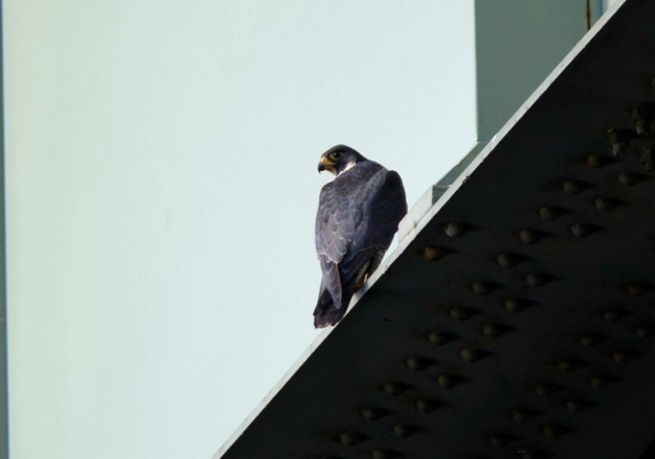 The usual early start produced a couple of surprises, one good and one not so good. First, the birding highlights, which included: 3 Little Ringed Plovers, 1 Common Tern, no less than 9 broods of Tufted Duck, 1 drake Ruddy Duck and a minimum of 6 adults Black-necked Grebes with 5 young. As we were walking off No.3 bed to survey No.1 bed, we got a call from Kieran Foster, to say that he’d just found a new species for the Reserve in one of his mist nets. Well, the last time we had a call to that effect, it turned out to be an ultra-rare White-crowned Sparrow. Not so rare this time and not a bird, but equally delightful - a Lunar Hornet Moth, a clear-wing moth and a species I’d always wanted to see. Then, onto No.1 bed, where disappointingly, we couldn’t locate any of the recently fledged young Peregrines. Then, by coincidence, a phone call from our good friend Jane Cullen to say that a young Peregrine from our breeding site had been found and taken into care. We’re currently investigating the circumstances surrounding this to try and ensure that the bird is properly cared for and released back into the wild. A phone shot of the Lunar Hornet Moth