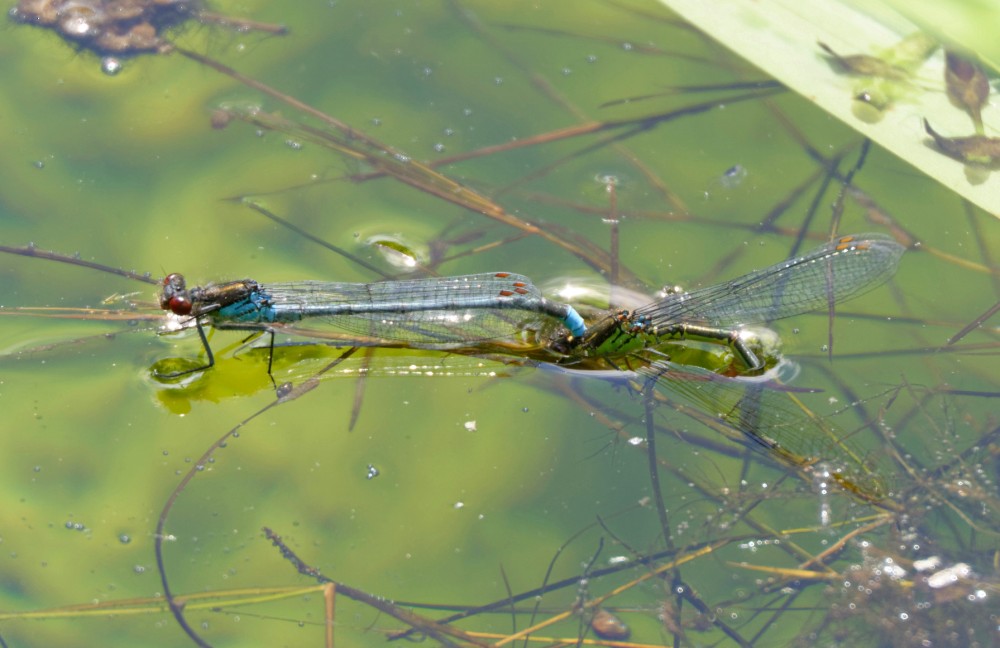 Photo of a pair of Red-eyed Damselflies oviposting near the footbridge yesterday.
