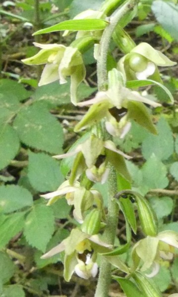 Broad-leaved Helleborine (Epipactis helleborine) Three plants (maybe more smaller examples) hiding under the shade of the trees to the left of the entrance to the Frank Linley Hide.