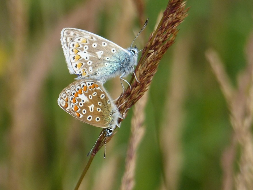 Photo of a pair Common Blue Butterflies spotted on No.1 bed this morning.